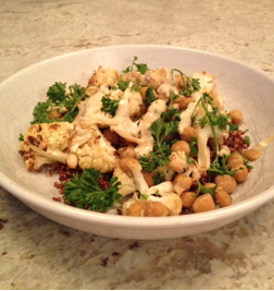 - Roasted Cauliflower and Chickpea Tahini Medley This recipe is quick, easy and tastes delicious! Slightly adapted from the Simply Veganista website, it is the perfect spring dish.–Lisa